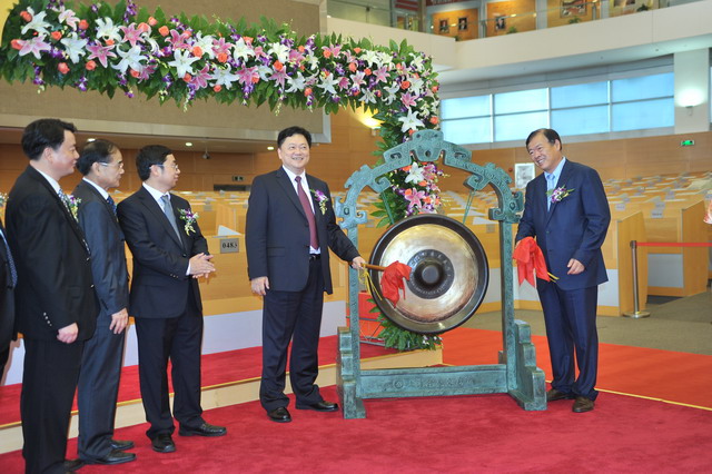廈門(mén)市人民政府葉重耕副市長(zhǎng)及象嶼股份王龍雛董事長(zhǎng)共同敲鑼開(kāi)盤(pán)