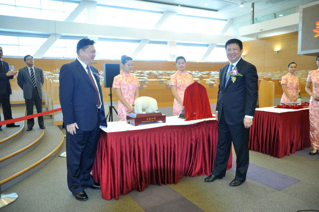 廈門(mén)市人民政府葉重耕副市長(zhǎng)、廈門(mén)市人民政府國(guó)有資產(chǎn)監(jiān)督管理委員會(huì)主任林杰、廈門(mén)象嶼保稅區(qū)管理委員會(huì)主任王軍及象嶼股份王龍雛董事長(zhǎng)為雄獅點(diǎn)睛認(rèn)主